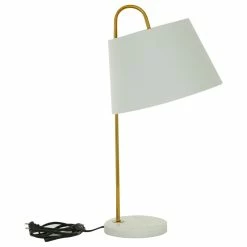 Discount โญ Elegant Designs Set Of 2 Modern Leather Table Lamps, White Fabric Shades, Blue โ