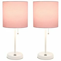 New 👏 All The Rages Inc. Stick Lamp With USB Charging Port, Light Pink Fabric Shade – 2 Pack Set 🛒
