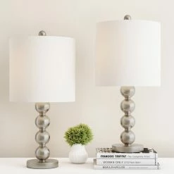 Cheapest 👍 Table Lamps Set Of 2, Modern Brushed Steel, 2 LED Bulbs Included By Lavish Home 👏