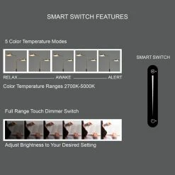 - Full Range Dimmer; 5 Color Temp Settings Touch Smart Switch