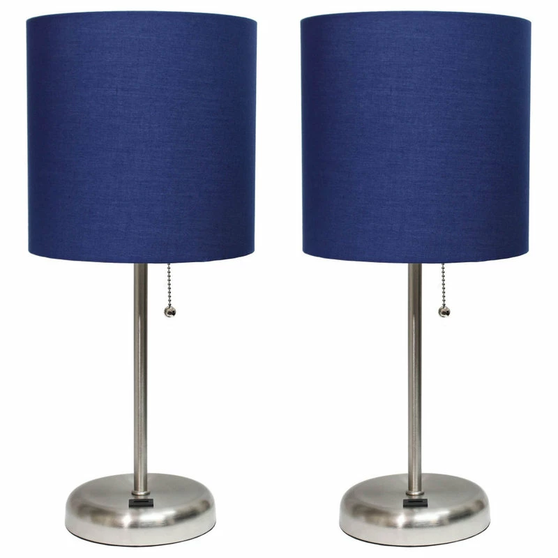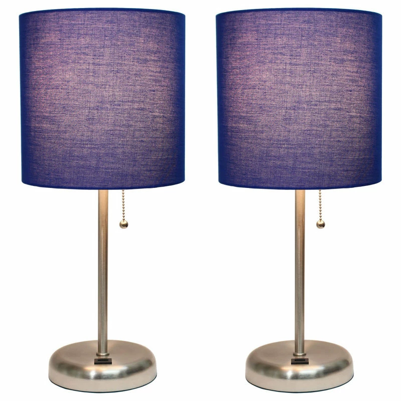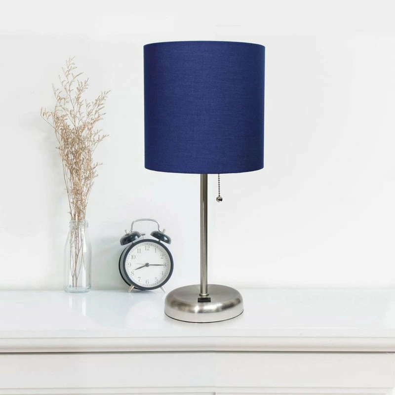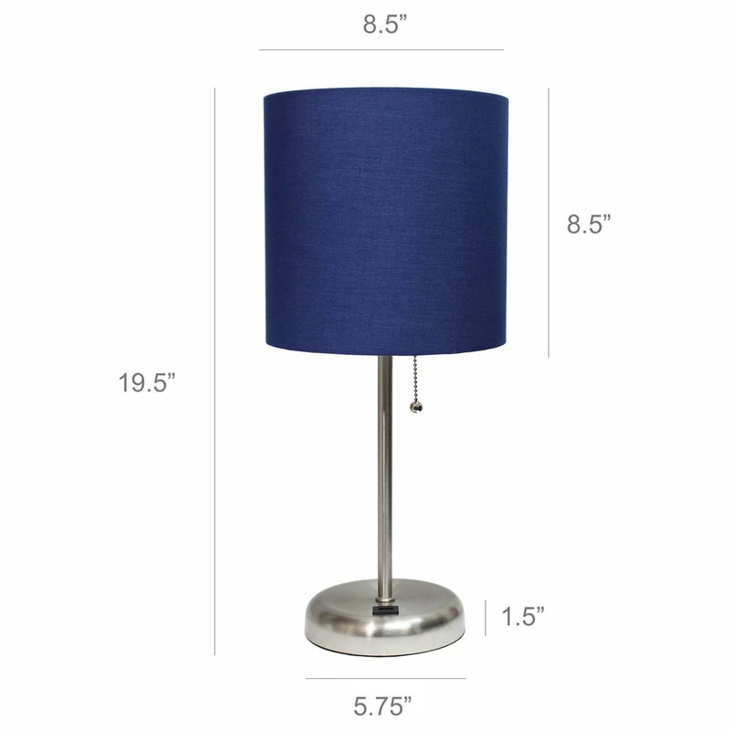 This fun and fashionable lamp features a brushed steel base and a fabric shade. It comes equipped with a USB seated in the base for use to charge mobile phones, handheld games, tablets, and other small electronics. This lamp will add a fabulous flair to any room. Perfect for bedrooms, kids and teens, college dorms, nurseries, or fun offices!