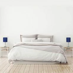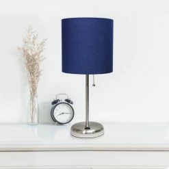 - Brushed Steel base with USB charging port on base. Fabric Shade