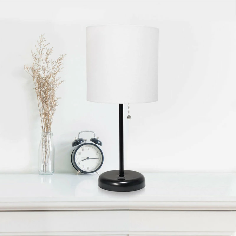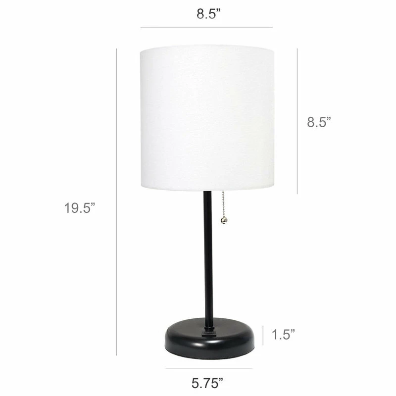 This fun and fashionable lamp features a black base and a fabric shade. It comes equipped with a USB seated in the base for use to charge mobile phones, handheld games, tablets, and other small electronics. This lamp will add a fabulous flair to any room. Perfect for bedrooms, kids and teens, college dorms, nurseries, or fun offices!