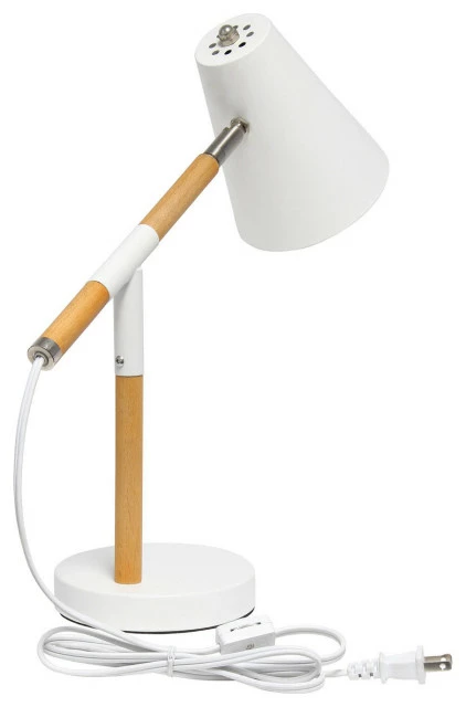 Simple yet modern this desk lamp will add a stylish touch to your home, dorm or office! The conical shade can be easily adjusted 180 degrees that allows easy focusing of light where needed the most. Made of mixed Materials, this lamp is on trend! Material Breakdown: metal 70%, beech wood 20%, PLASTIC 10% Beech wood country of origin/region: China. Wood Cubic volume (cu. In.): 8.44. Not FSC certified. Available in additional color option.
