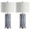 Discount ⭐ Elegant Designs Set Of 2 Modern Leather Table Lamps, White Fabric Shades, Blue ⌛