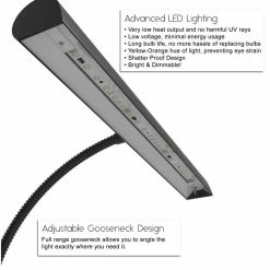 - The gooseneck on the GPLED14-7D piano lamp allows for great control of directing the light and adjusting the lamp shade direction.