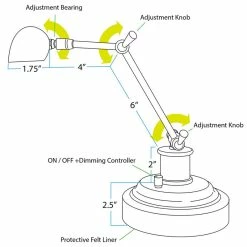 The light is also dimmable across 3 brightness settings via a touch-activated base, allowing you to adjust the light levels depending on how much light you need. Whether it’s for studying, music, reading, relaxing, or just coffee time, the brightness can be changed with a touch of a finger anywhere on the base of the lamp. For height adjustability, the upright portion of the lamp features two points for horizontal and vertical adjustment.