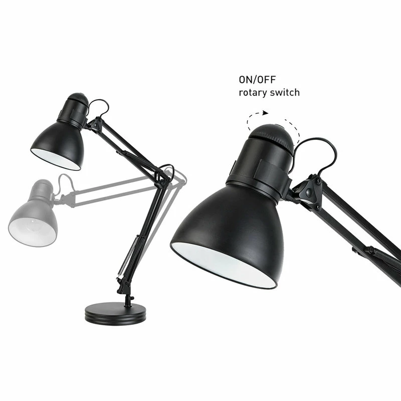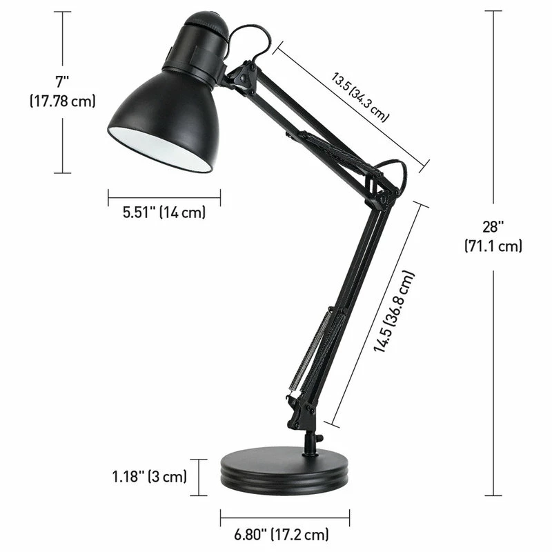 Globe Electric’s 28″ Heavy Base Architect Spring Balanced Swing Arm Desk Lamp is an ideal option for desk lighting. The top of the spring-loaded swing arm is easily adjustable, stretching to 28″ at its tallest, to direct light wherever you need it the most. The long cord allows you the ability to place the light anywhere you want regardless of where your wall socket is located. The large rotary on/off switch is conveniently located at the top of the lamp shade for quick and easy use. Requires one 60W A19 E26 base bulb (sold separately).