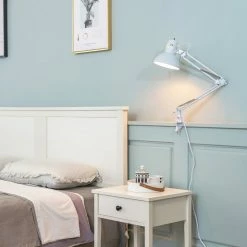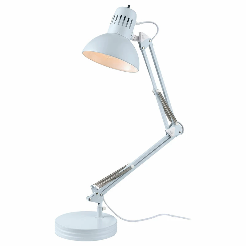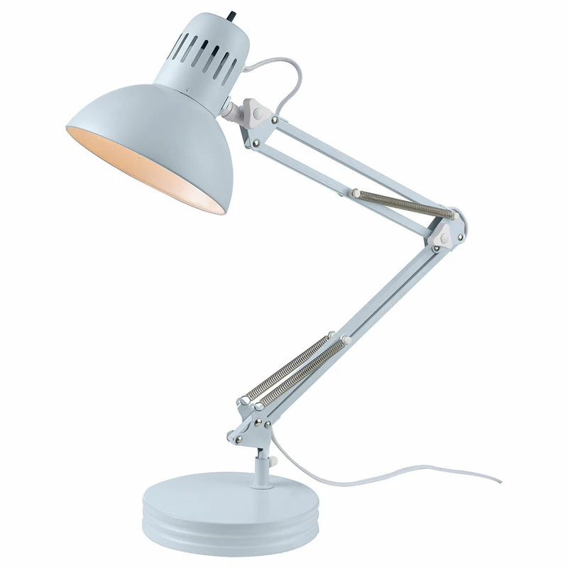 Out of the office and into your home, the Architect Desk Lamp in Matte Light Blue stylishly adds a pop of color to your loft, dorm room, make-up station, night table, chic home office or child’s desk. The interchangeable base and clamp design lets you place your light on any surface with an edge, essentially a truly multipurpose lamp. Swing-arm task lamps can look right at home any where bright, focused light is needed. They can be clamped onto a countertop, a shelf on the wall or onto floating shelves in your kitchen if space is really tight. The durable metal body echoes the stylings of the traditional architect desk lamp design from the 1920s, but the modern color is perfect for the interior designs of today. The adjustable head and neck can be moved without interfering with the wiring, so you always have the perfect light.