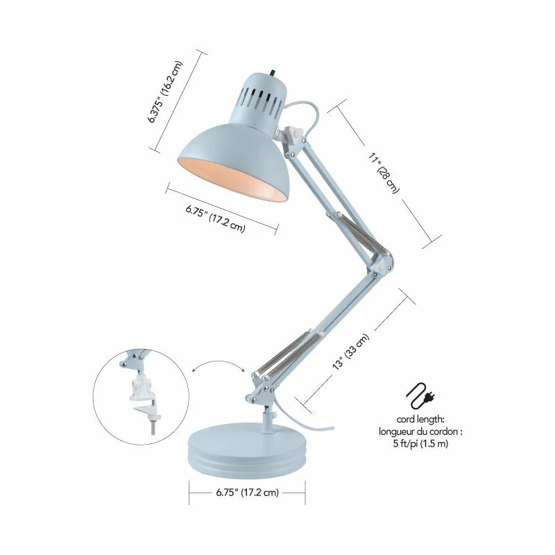 - VARIABLE MOUNTING: equipped with an interchangeable base and clamp arm, you can use your lamp in a variety of ways on a variety of spaces