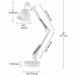 Globe Electric’s Architect 28″ Swing Arm Desk Lamp is an ideal option for desk lighting. The spring-loaded swing arm is easily adjustable, stretching to 28″ at its tallest, to direct light wherever you need it the most. The long cord allows you the ability to place the light anywhere you want regardless of where your wall socket is located. The rotary on/off switch is conveniently located at the top of the lamp shade for quick and easy use. Requires one E26/medium base 60-watt bulb (sold separately).