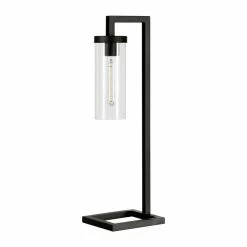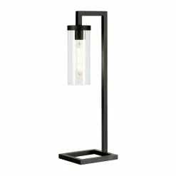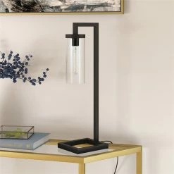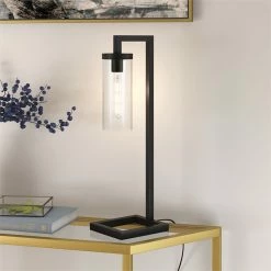 This clean, chic, linear lamp is modern farmhouse in design and will fit into many contemporary spaces. That is reflected in the three finish options, a brass, a black or blackened bronze, and a silver nickel. As well as the clear, milk white glass or seeded glass shades. It’s perfect for your home office or study, bedroom nightstand, or as a versatile table lamp for any room in the house such as the living room or dining room