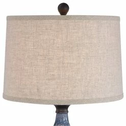 Add a casual touch to your decor with this charming Bailey Farmhouse Distressed Blue Ceramic Table Lamp. The textured blue ceramic base features heavy dark khaki distressing and dark textured bronze accents.