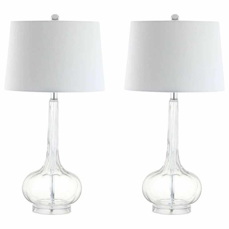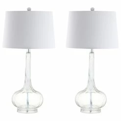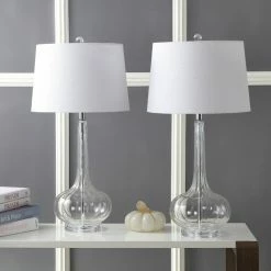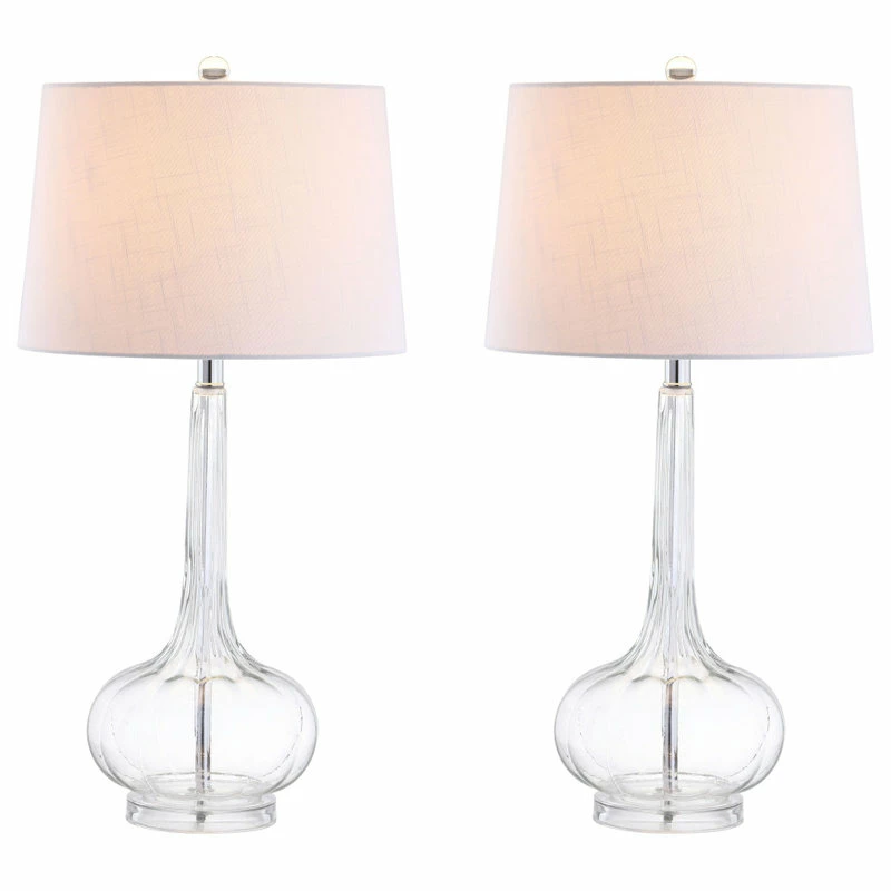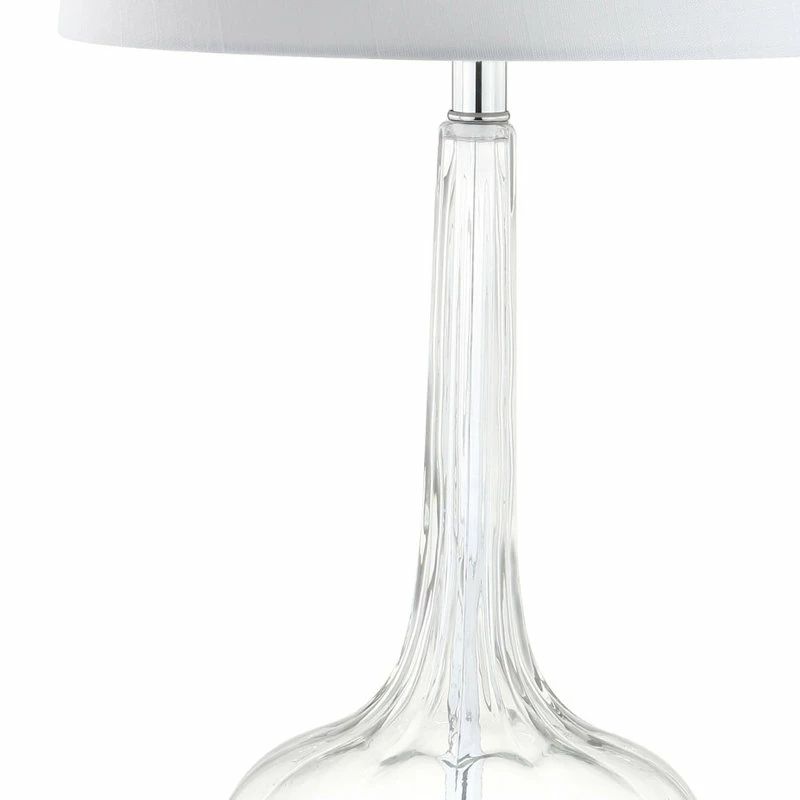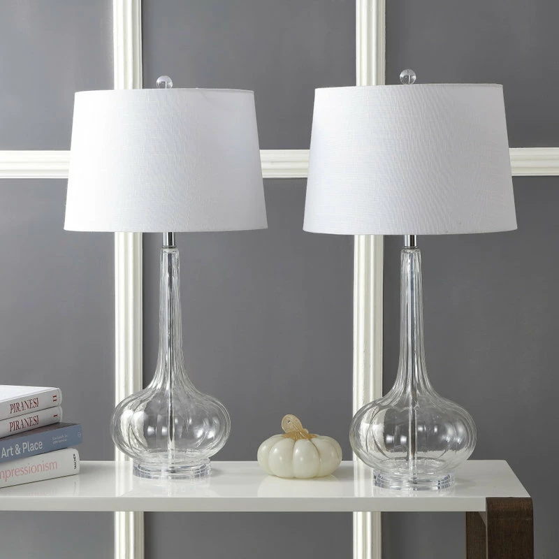 The delicately fluted teardrop shape of this classic glass style and classic oversized drum shade make this lamp a versatile choice for any room in the house. At 28.5″ high, a pair would be lovely on nightstands for bedside reading or on a console for a statement-making entry. With a silk-wrapped cord reminiscent of classic antiques, its style extends all the way to the plug.