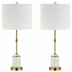 Perfect for a desk or nightstand, this table lamp is crafted of marble with a pronounced brass neck and white linen shade. The crystal detail adds the right amount of glam and refracts light when the bulb is illuminated. You’ll love the silk-wrapped cord and crystal finial, which tie the piece together.