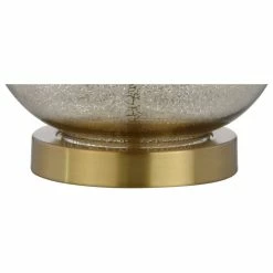 Classic curves accentuate hand-blown glass in this perfect combination of classic and contemporary. In an eye-catching silvered glass and brass base, rod, and finial, no design detail was overlooked. Softened with a white linen drum shade and finished with a silk-wrapped cord, the style extends all the way to the plug.