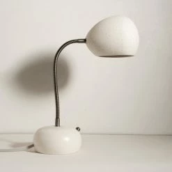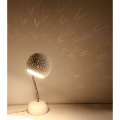 This porcupine shaped ceramic desk lamp emits a downwards task light and light textures around it. It has a touch dimmer knob on its base that activates with a short touch and dims it with a long touch.