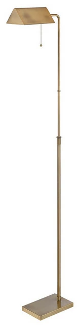 This transitional floor lamp showcases an all metal brushed brass finished body and shade. Detailed with an on/off pull-chain switch, this floor lamp can enhance your office, bedroom or den.