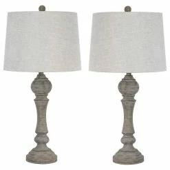 SET OF TWO β This set of two reclaimed table lamps with linen lamp shades are the perfect addition to any space to provide additional light or just as a beautiful dΓ©cor element!LINEN AND A RECLAIMED GREY FINISH β These table lamps feature a versatile linen lampshade with a curvaceous spindle lamp body, finished in a reclaimed grey. They add the perfect finishing touch to any space! FARMHOUSE CHIC β The classic and contemporary design elements and grey lamp shade color ensure these lamps perfectly complement any style, type or color dΓ©cor. FOR BEDSIDE AND MORE β This pair of grey lamps is perfect for setting on bedside tables, dressers, front entry tables, dining buffets, couch side tables or any space that youβre looking to add some wow to! HIGH-QUALITY AND DURABLE β These table lamps are the highest quality, durable and sure to last the test of time. Youβll be enjoying additional light and a beautiful dΓ©cor touch for years to come!