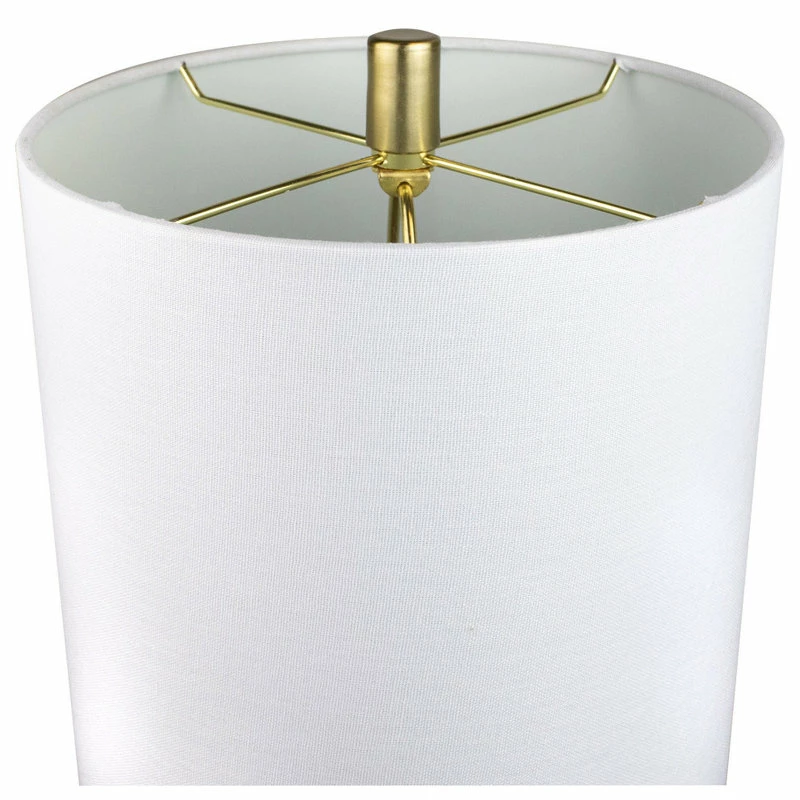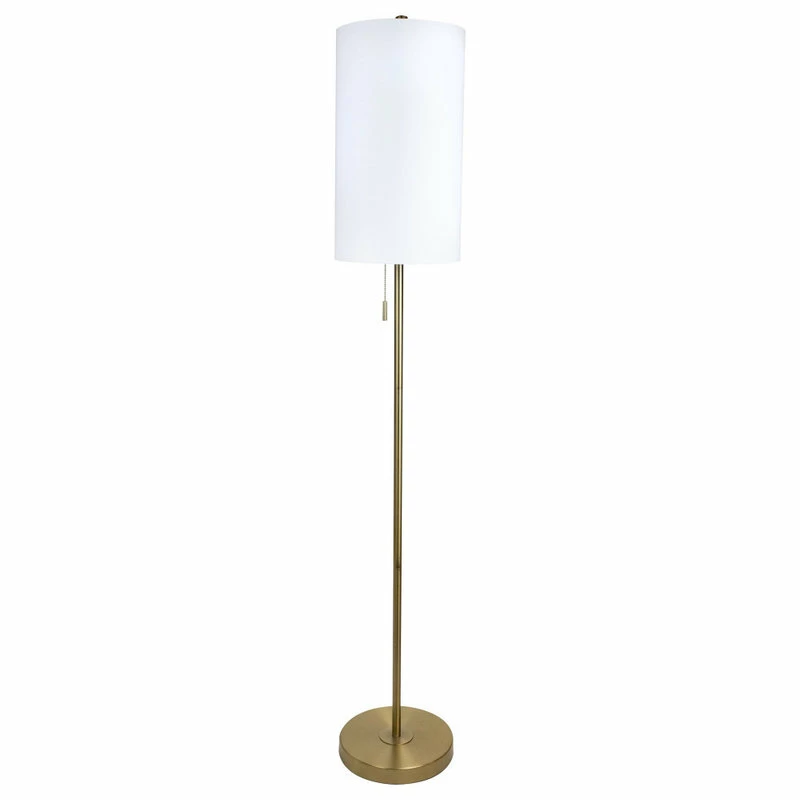 62″ tall, this metal floor lamp features a plated gold finish and crowned with a crisp white fabric drum shade, this lamp is the perfect finishing touch to any modern decor.
