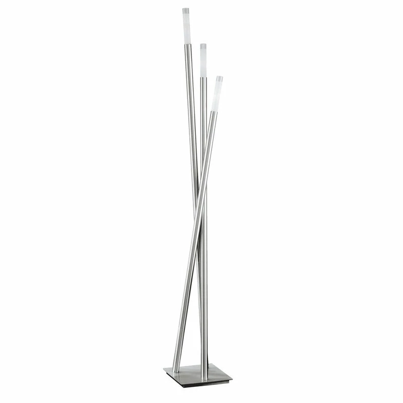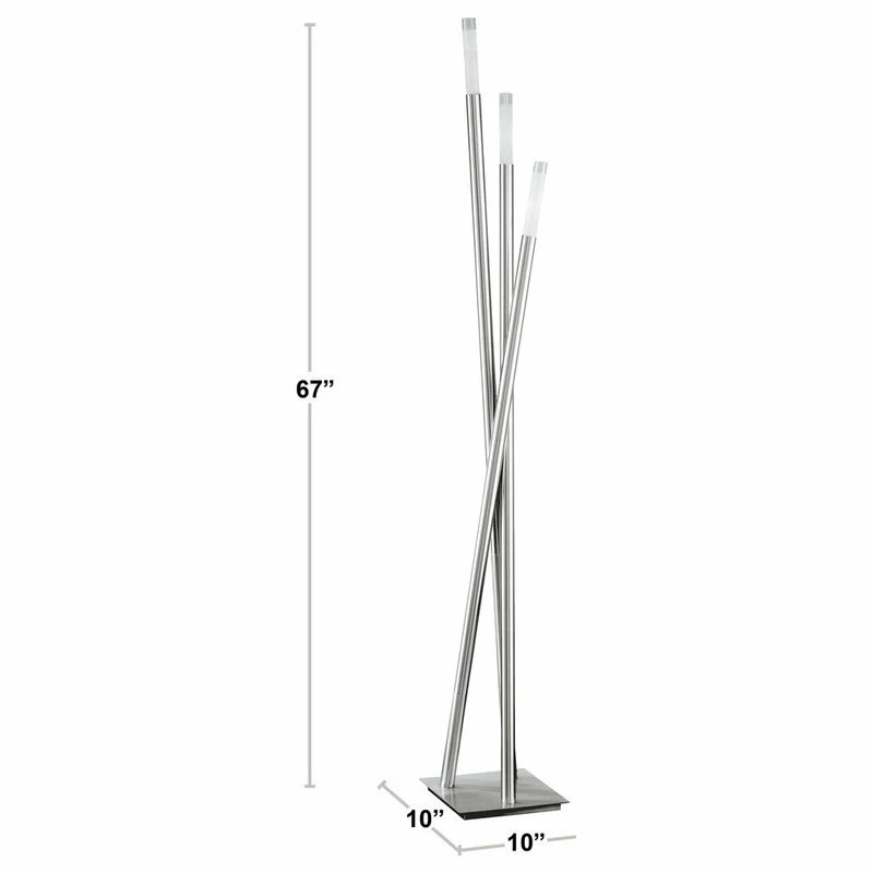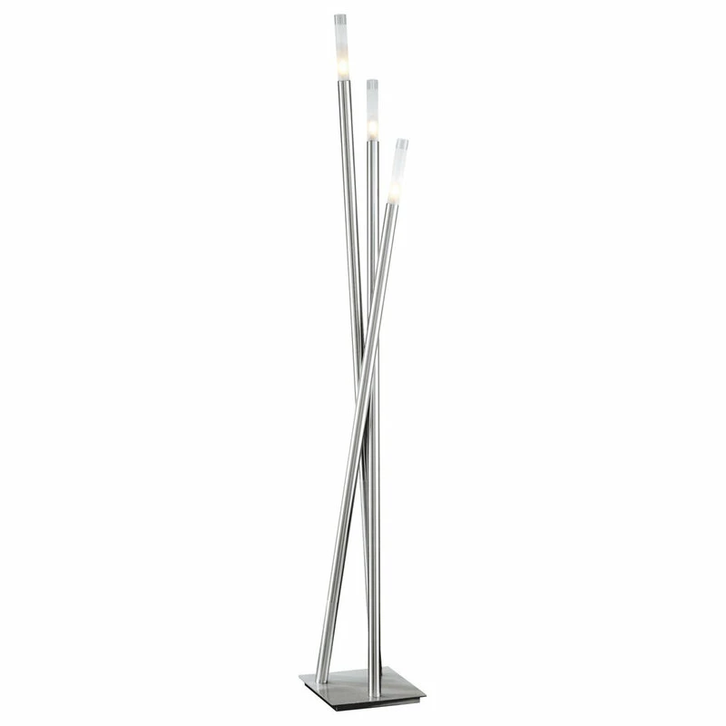 Cylindrical frosted sconces create a soft glow, accenting the modern design of the tubular metal arms of the Icicle Floor Lamp. If you like a subtle contemporary look, the Icicle Floor Lamp is a perfect choice. Uses 40W G9 halogen bulbs. Available in brushed nickel, antique, and gold finishes.