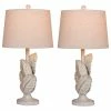 Discount โญ Elegant Designs Set Of 2 Modern Leather Table Lamps, White Fabric Shades, Blue โ