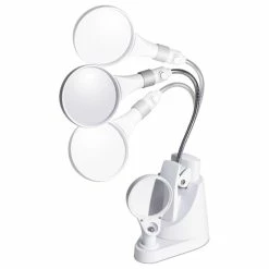 Complete projects that require fine detailing and intricate work using the Ottlite Clip and Freestanding Dual Magnifier. This magnifying lamp comes with a 3x and a 6x magnifier equipped with brilliant OttLite LED illumination. With its adjustable gooseneck stem and swivel base, you can position this compact lamp in any convenient way. You can also use this portable lamp as a clip magnifier — great for needlework.