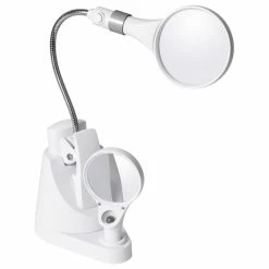 Complete projects that require fine detailing and intricate work using the Ottlite Clip and Freestanding Dual Magnifier. This magnifying lamp comes with a 3x and a 6x magnifier equipped with brilliant OttLite LED illumination. With its adjustable gooseneck stem and swivel base, you can position this compact lamp in any convenient way. You can also use this portable lamp as a clip magnifier — great for needlework.