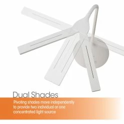 - Dual pivoting shades move independently to provide two individual or one concentrated light source