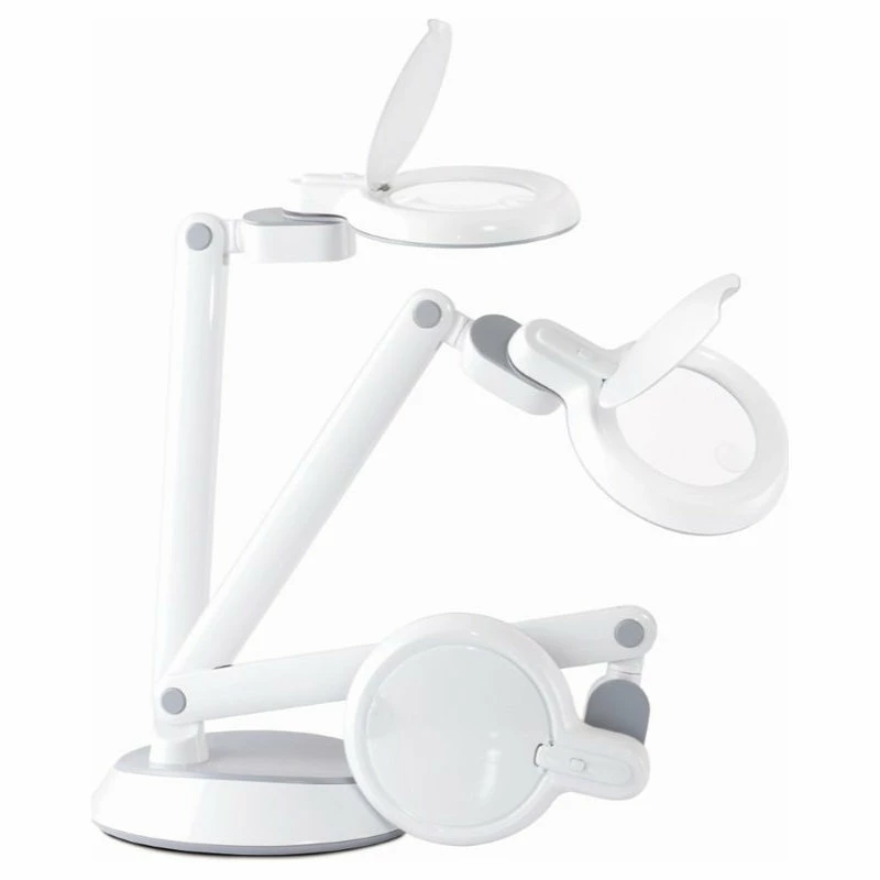 The OttLite Space-Saving LED Magnifier Desk Lamp is a lamp and magnifier all in one. With an articulating arm and pivoting head with 4 points of adjustment, youβll be able to position the super bright LEDs anywhere you need. A 3-inch, 1.75x optical-grade magnifier helps you see intricate details with ease. Thereβs a flip cover on the magnifier to protect the lens when not in use and the lamp easily folds for compact storage. With OttLite Natural Daylight LED Illumination, you can see details clearly and reduce glare and eyestrain so you can do what you love, longer.