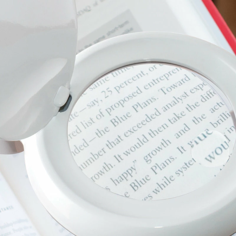 - 3-inch 1.75x optical-grade magnifier with 4x spot viewer ; flip cover on magnifier closes to protect lens when not in use