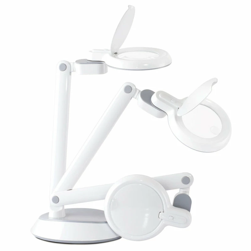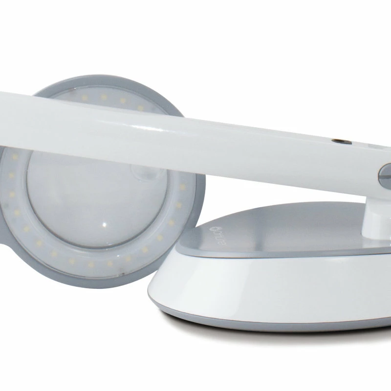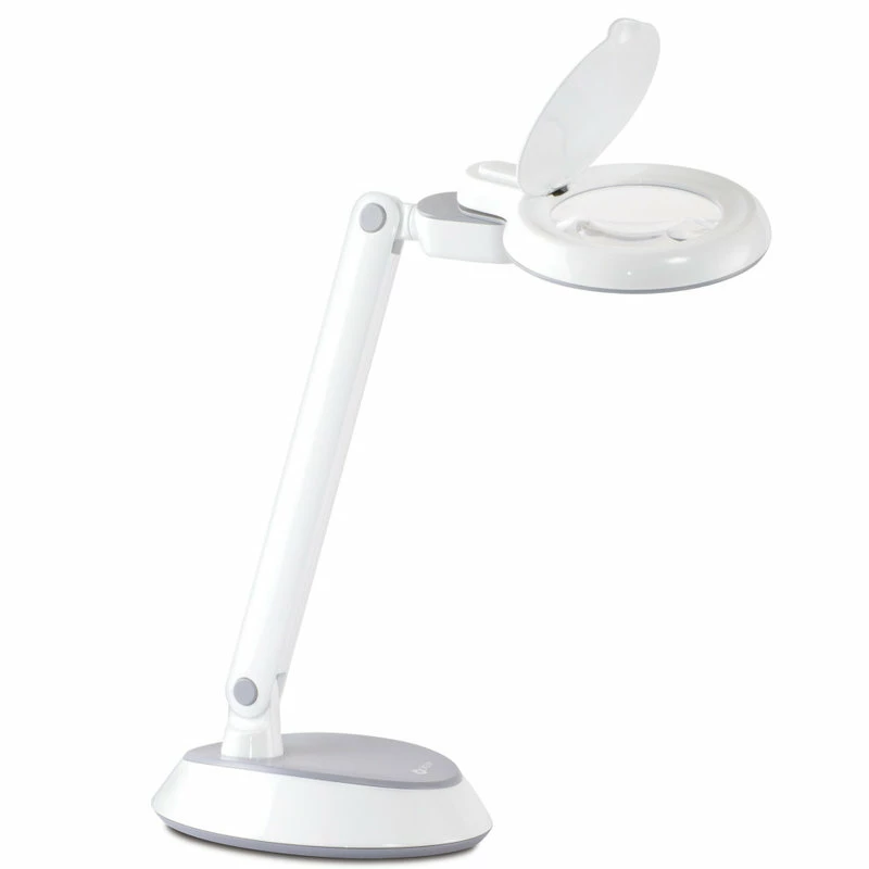 The OttLite Space-Saving LED Magnifier Desk Lamp is a lamp and magnifier all in one. With an articulating arm and pivoting head with 4 points of adjustment, youβll be able to position the super bright LEDs anywhere you need. A 3-inch, 1.75x optical-grade magnifier helps you see intricate details with ease. Thereβs a flip cover on the magnifier to protect the lens when not in use and the lamp easily folds for compact storage. With OttLite Natural Daylight LED Illumination, you can see details clearly and reduce glare and eyestrain so you can do what you love, longer.
