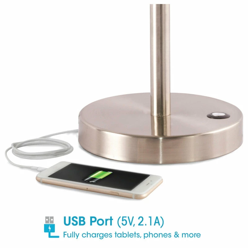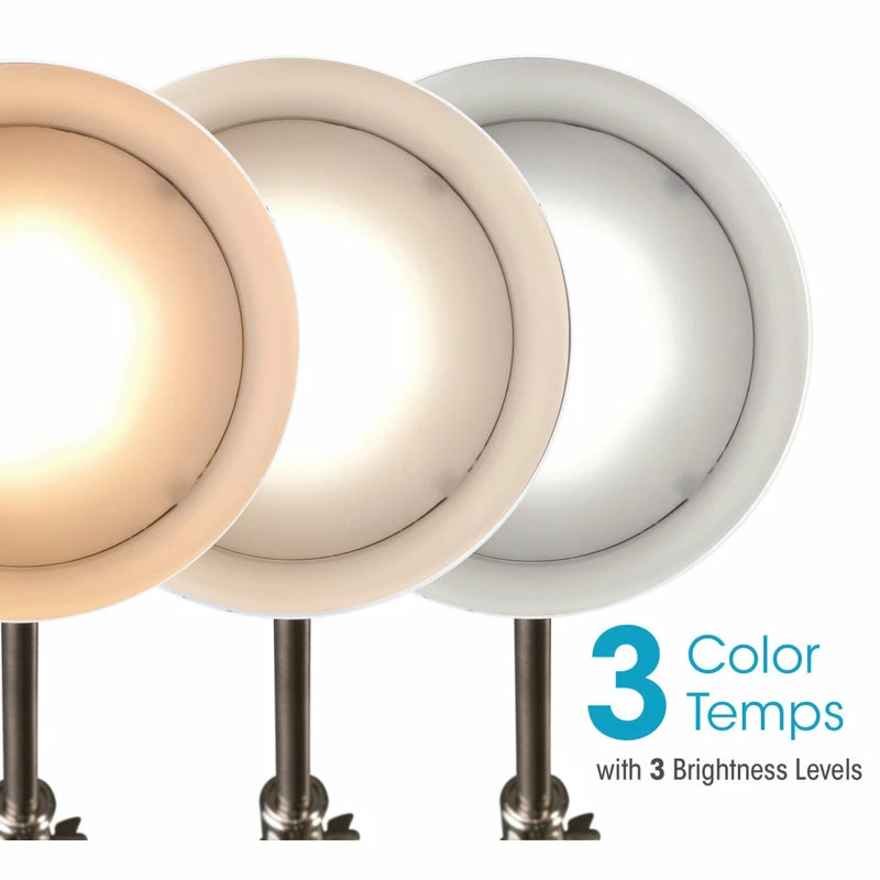 Bring the beauty of OttLite’s natural ClearSun LED technology into your space and enjoy reduced eyestrain – by up to 51%. The OttLite Harmonize LED Desk Lamp is perfectly appointed with brushed nickel finish and decorative touches on the counterbalance arm and shade. This adjustable, classic design features the best in modern features including 3 color temperatures, 3 brightness settings, touch control and a USB port (5V, 2.1A) to fully charge your devices.