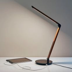 An upgrade from the standard desk lamp, the Rodney LED Wireless Charging Mult-Function Desk Lamp takes desk lamps to the next level with extra functionality and a sleek walnut wood finish. With 6 watts of adjustable, flicker free LED lighting, you can feel free to work, study or read without straining your eyes.Full control over the 5 different color temperature modes and 5 different brightness levels offers an infinite range of lighting selections. This lamp also adjusts in 2 different locations providing a wide range of reach on your desk. In addition, a Qi certified wireless charging pad is conveniently located inside of the base. Many smartphones (list below) have Qi technology built in, so just place your phone on the pad and it will charge right up. No cords, no mess. It’s that easy! All AdessoCharge product is Qi certified by the Wireless Power Consortium. Our product has been tested and verified to be safe and in compliance with the Qi standard. The AdessoCharge pad supports 5W charging on contact with the charging pad, which gets your phone from 0% to 100% in just 3-4 hours, depending on your phone model. A USB is located on the base and can charge up a second device simultaneously. The LED’s are integrated into this lamp and are not replaceable. However, Adesso LED’s are top quality and last around 50,000 hours!