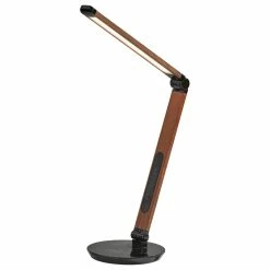 An upgrade from the standard desk lamp, the Rodney LED Wireless Charging Mult-Function Desk Lamp takes desk lamps to the next level with extra functionality and a sleek walnut wood finish. With 6 watts of adjustable, flicker free LED lighting, you can feel free to work, study or read without straining your eyes.Full control over the 5 different color temperature modes and 5 different brightness levels offers an infinite range of lighting selections. This lamp also adjusts in 2 different locations providing a wide range of reach on your desk. In addition, a Qi certified wireless charging pad is conveniently located inside of the base. Many smartphones (list below) have Qi technology built in, so just place your phone on the pad and it will charge right up. No cords, no mess. It’s that easy! All AdessoCharge product is Qi certified by the Wireless Power Consortium. Our product has been tested and verified to be safe and in compliance with the Qi standard. The AdessoCharge pad supports 5W charging on contact with the charging pad, which gets your phone from 0% to 100% in just 3-4 hours, depending on your phone model. A USB is located on the base and can charge up a second device simultaneously. The LED’s are integrated into this lamp and are not replaceable. However, Adesso LED’s are top quality and last around 50,000 hours!