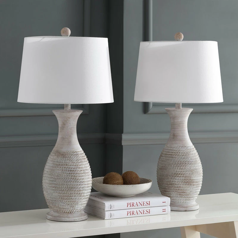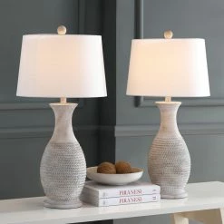 Invite soothing, warm style into the living room with this contemporary table lamp. Designed with flowing curves, its neutral grey textured hue blends into any interior with ease. Perfect for framing a sofa, its crisp white cotton shade is complimentary.