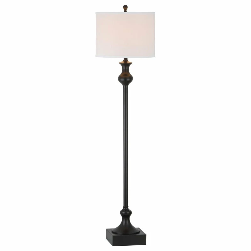 Relax, sit down and sit for a spell. The Brewster floor lamp is ideal beside an armchair in any room in need of a warm glow and architectural detail. Its oil-rubbed bronze metal base boasts a weighty sculpted disposition balanced by a white drum shade.