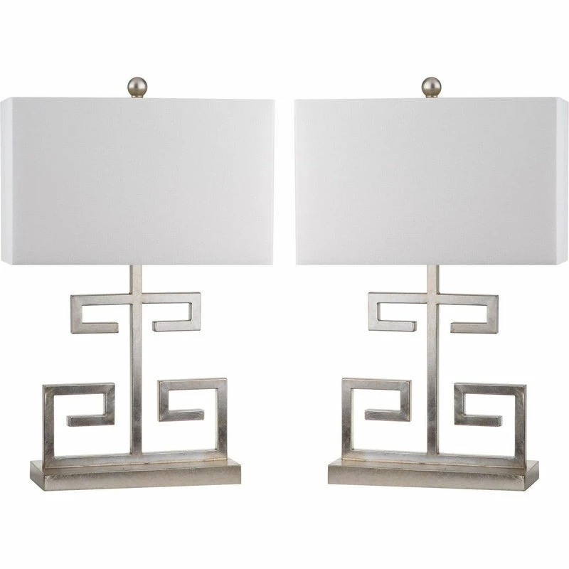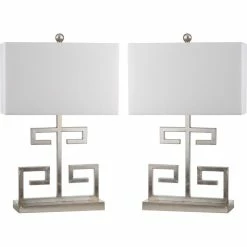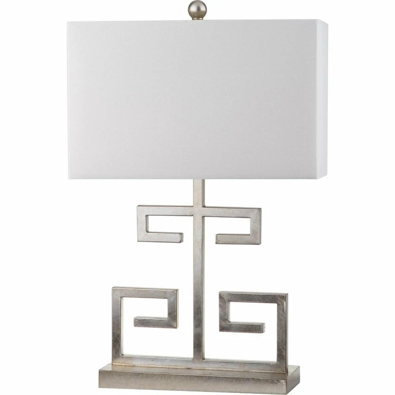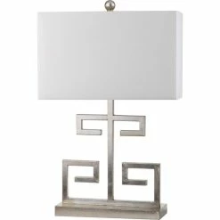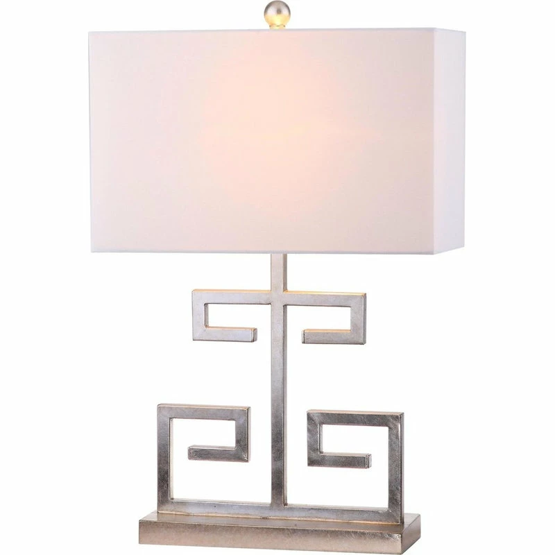 Inspired by the ancient Greek symbol for infinity, the Greek Key table lamp is the key to a timelessly beautiful home. This modern-day interpretation is crafted of metal with a sleek finish and topped with a crisp white rectangular shade.