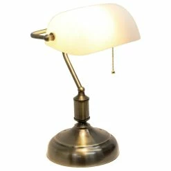 Simple Designs Executive Banker’s Desk Lamp with Glass Shade, White.