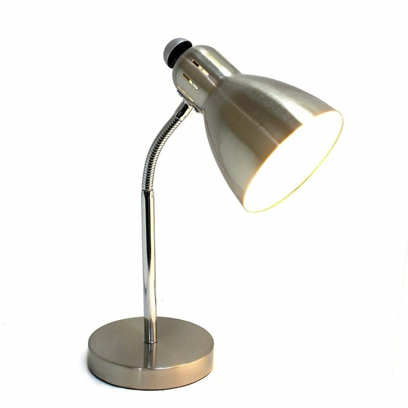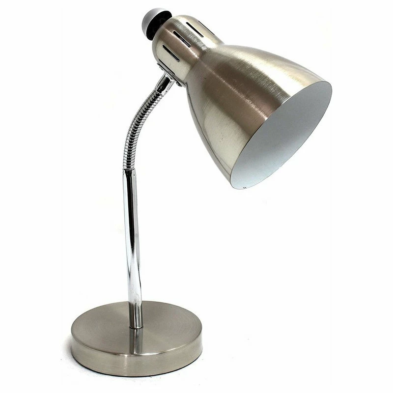 Simple Designs Semi-Flexible Desk Lamp, Brushed Nickel .Simplicity at it’s best. This is your classic lamp suited best on your office desk, bedside, or college dorm! With a semi-flexible arm, you can move the lampshade to accommodate different positions while maintaining a firm stance.