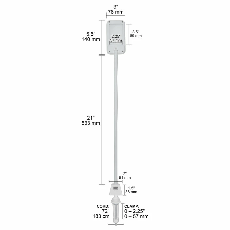 SKU: 12006 Categories: Desk Lamps, Lamps Tags: 20-inch flexible neck, Adjustable lamp, Architect lamp, Bedroom reading lamp, Clamp base, Clamp lamp, Clamp on shelf lamp, Clip-on lamp, Desk lamp, Flexible arm desk lamp, Gooseneck Lamp, Hobby Lamp, Lamp, Reading lamp, Rotating arm, Swing arm lamp, Task lamp