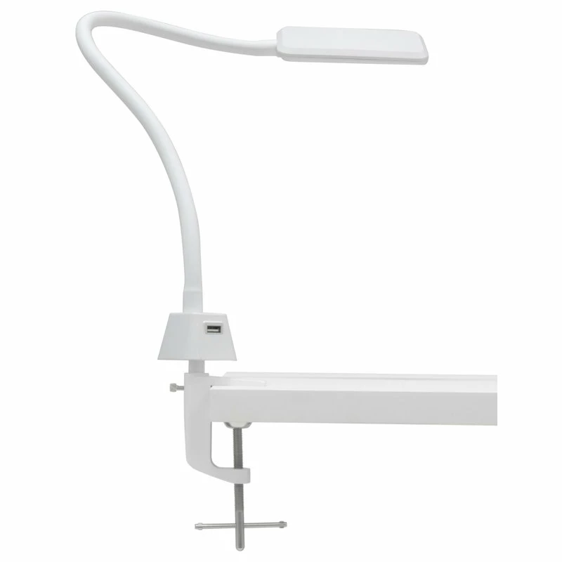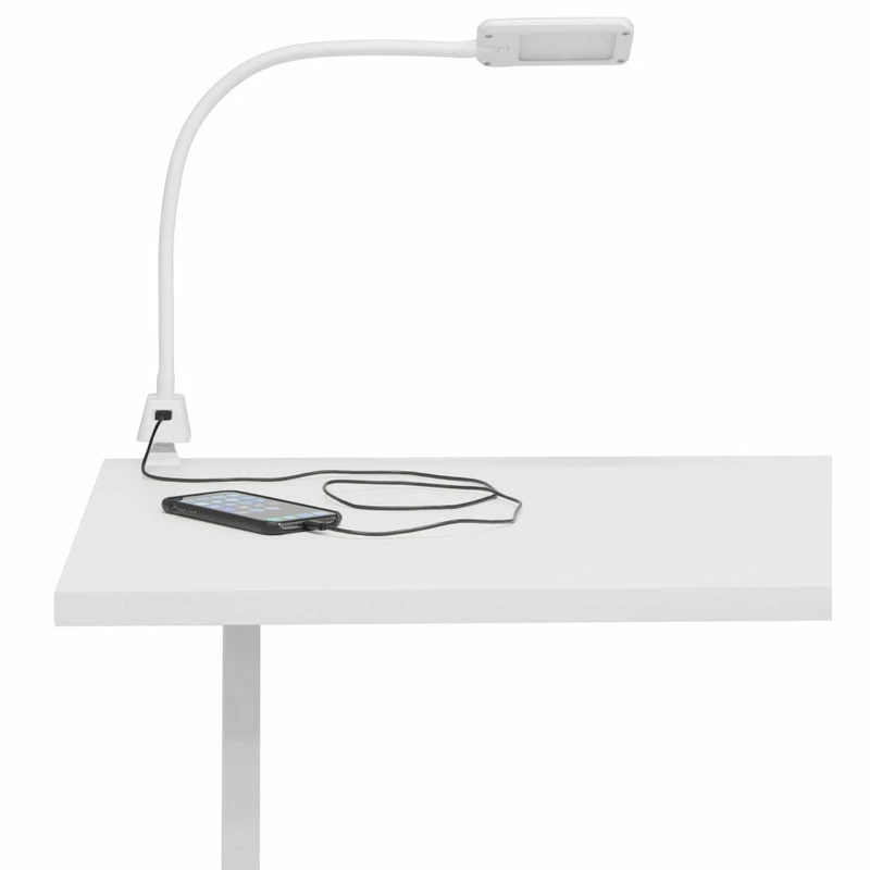 The LED Flex Lamp with USB Charging Port by Studio Designs features a daylight color temperature of 4000K for drawing and sketching. The bright 300 lumens light and soft flexible neck allow you to illuminate your work area for almost any project. It mounts easily to your desktop or shelf up to 2-1/4 in. thick with a durable metal mounting clamp that will not break like plastic clips. It has a UL-approved plug and a power cord that is 73 in. long and has the on/off switch. The USB charging port at the base of the lamp makes it easy to keep your phone or other devices close and charged. The 21 in. long neck has a soft covering that won’t pinch your fingers like metal necks. The energy-efficient LED bulbs last for thousands of hours: longer than traditional bulbs. The LED bulbs will not produce heat, so it is great for all ages and for hours of use.