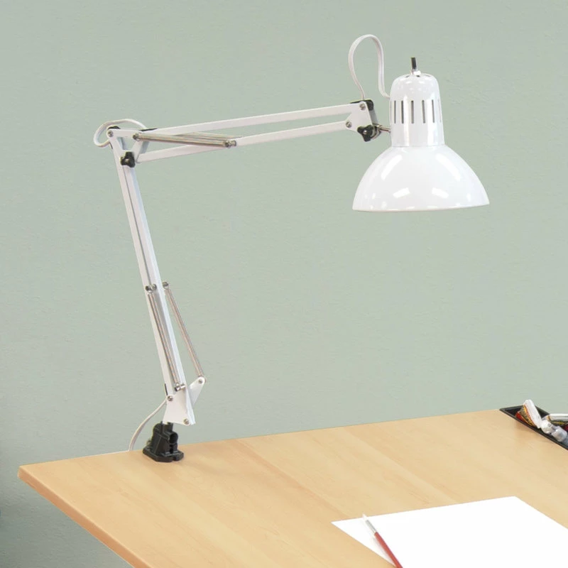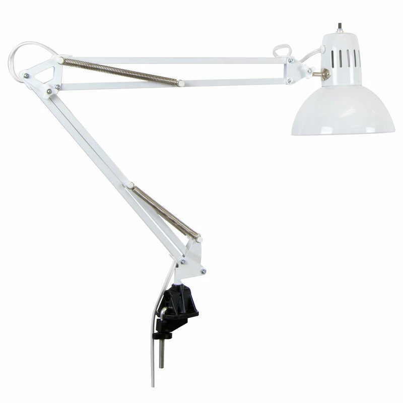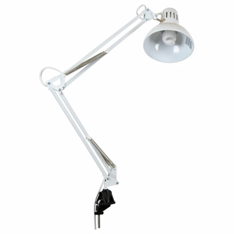 Modern and sophisticated, the Swing Arm Lamp complements any home or office set-up. The lamp’s flexible arm built of steel springs and tension control knobs extends up to 36”. Features a sleek, high gloss finish. The clamp mounts easily to any Studio Designs table. 100 Watt U.L. approved for U.S. and Canada. 13 Watt CFL Bulb Included. Available in Black (12022), White (12024), or with LED bulbs Black (12038), White (12039)