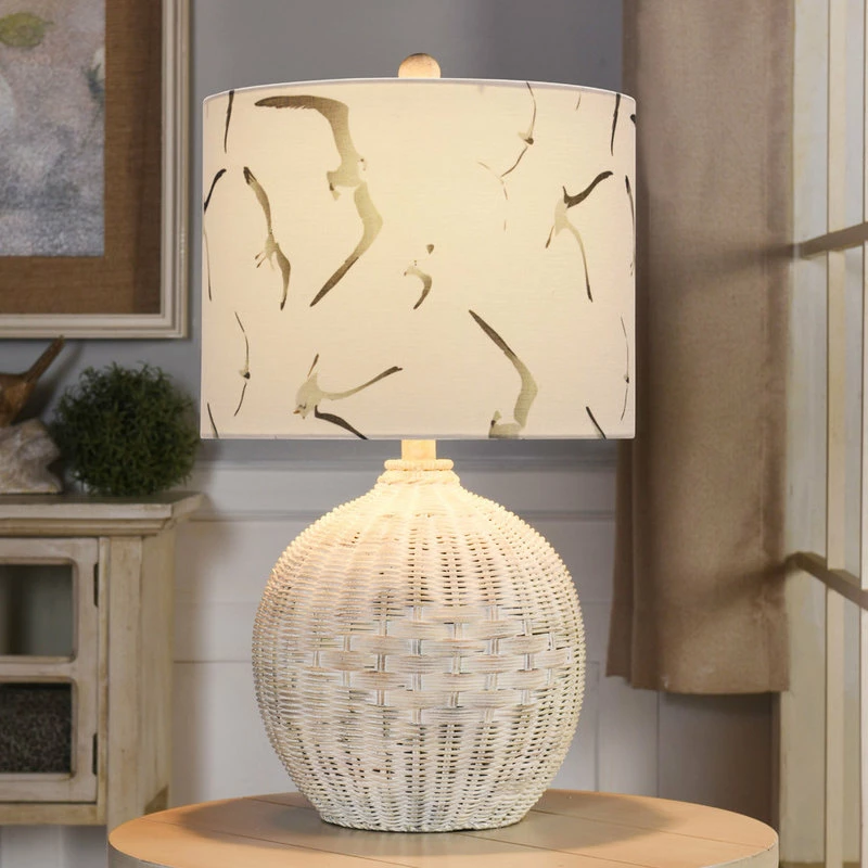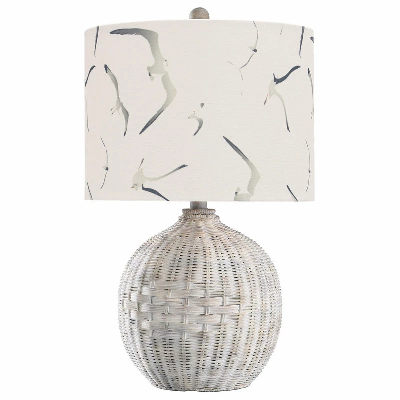 The White Rattan table lamp with a seagull print shade is perfect for anyone who wants to bring a subtle nautical aesthetic to a bedroom. The body is made from rattan and comes with a natural, washed finish. The round, hardback shade features images of seagulls, and it brings a fun touch to your abode.